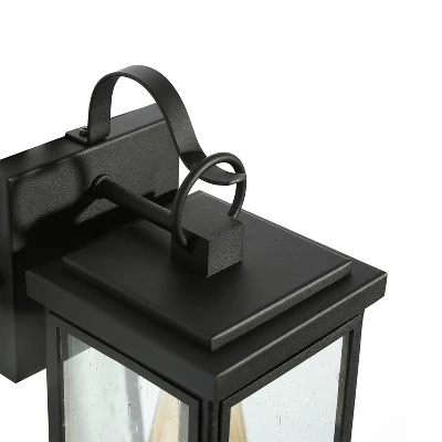 Brighten up your house’s exterior and interior with this classic outdoor wall light by LNC. This black modern outdoor wall lantern light includes one pieces of light fixtures. It takes a lantern-shaped metal structure as the main body and matching the clear glass shade, forming an elegant and harmonious look with a metal structure as a whole. Made from iron and seeded glass in a lovely weather-resistant black finish. With its lantern design and understated silhouette, this unique one-light outdoor wall light is great for modern, farmhouse, rustic, traditonal or transitional style decor.
