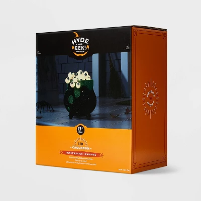 This 13-Inch Witch Cauldron with Eyeballs Halloween Novelty Sculpture Light from Hyde & EEK! Boutique™ will instantly add a bewitching look to your Halloween party. Featuring a soft, fuzzy fabric construction, this decorative sculpture light is designed as a black-and-green witch cauldron brimming with globular eyeballs in white, black and blue. The battery-powered light is adorned with 20 warm white LED dewdrop bulbs to give off a spook-tacular shine, and it comes with an on/off timer mode for versatile use anywhere inside or outside of your home.