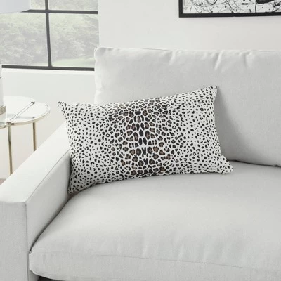 Channel exotic flair with this super stylish indoor/outdoor pillow from Mina Victory Home Accents. Handmade with a fashionable leopard print on a neutral base that reverses to a lively dot pattern on back. Spot cleanable polyester cover has zipper closure and polyester fill. 14”x 24” rectangle.
