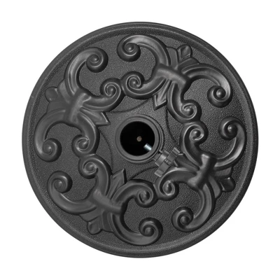 This black finish round umbrella base is filled with cement, this umbrella base does not need to be injected with water or sand, it is durable and weather resistant with a long service life
