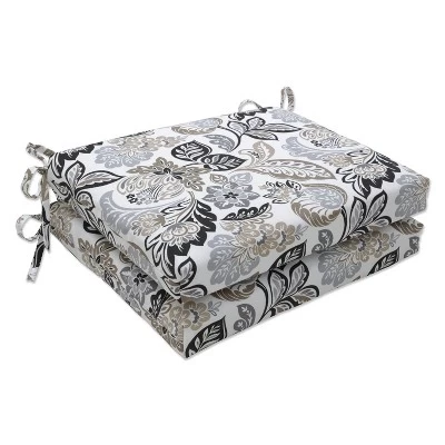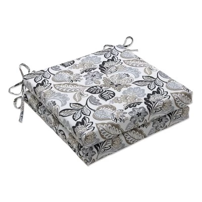 2pc Dailey Outdoor/Indoor Squared Chair Pads Pewter Black – Pillow Perfect