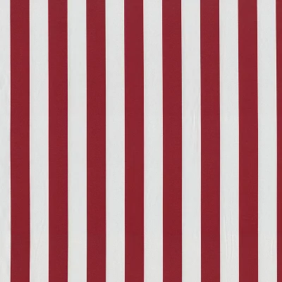 This set of two outdoor tufted wicker chair cushions features a classic cabana stripe. Printed in red and white, the two-inch wide stripes give this pattern a casual feel for any outdoor decor. Additional features of these outdoor tufted wicker chair cushions include recycled polyester fiber fill and sewn seam closures. Also suitable for indoor use.
