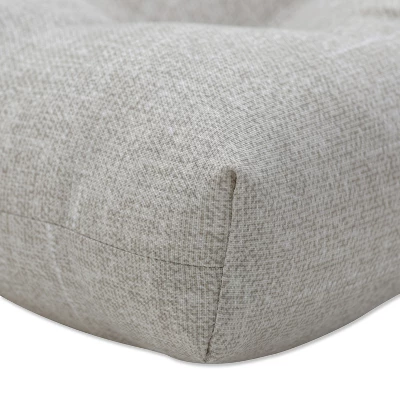 This set of two outdoor tufted wicker chair cushions features a distinguished, textured solid. Printed in shades of natural, they easily coordinate with many patterns, colors and decor styles. A casual distressing adds artist-intended imperfections and character. Additional features of these outdoor tufted wicker chair cushions include recycled polyester fiber fill and sewn seam closures. Also suitable for indoor use.