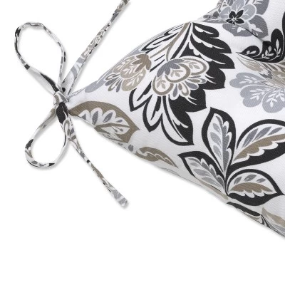 Floral prints never go out of season. This set of two outdoor tufted chair cushions is a timeless choice for a fresh, new look outside. In neutral shades of tan, gray and black, this perfectly-sized floral pops against the off-white ground. You’ll love the clean look for a casual outdoor setting. Additional features of these outdoor tufted chair cushions include 14″ ties and recycled polyester fiber fill with sewn seam closures. Also suitable for indoor use.