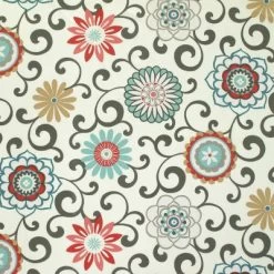 Style blooms with the fun floral pattern of this set of two outdoor seat cushions. Multicolored flowers in shades of blue, gray, orange, tan and red are set on an off-white ground surrounded with curling vines in a shade of dark gray. This versatile pattern easily pairs with light or dark furniture. Additional features of these outdoor seat cushions include square corners, 14″ ties and recycled polyester fill with zippered closures for easy removal. Also suitable for indoor use.