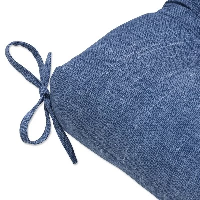 This large outdoor bench cushion features a distinguished, textured solid. Printed in shades of blue, it easily coordinates with many patterns, colors and decor styles. A casual distressing adds artist-intended imperfections and character. Additional features of this large outdoor bench cushion include tufted detailing, 14″ ties and recycled polyester fiber fill with a sewn seam closure. Also suitable for indoor use.
