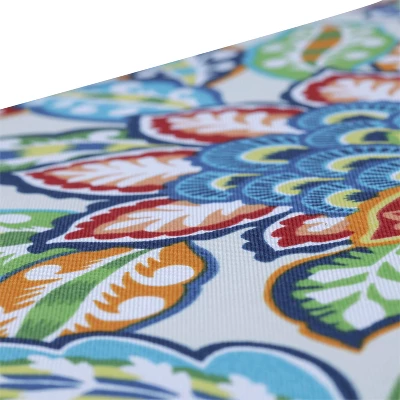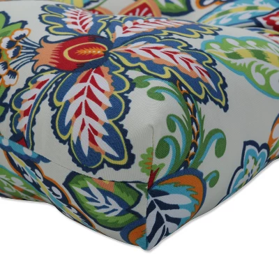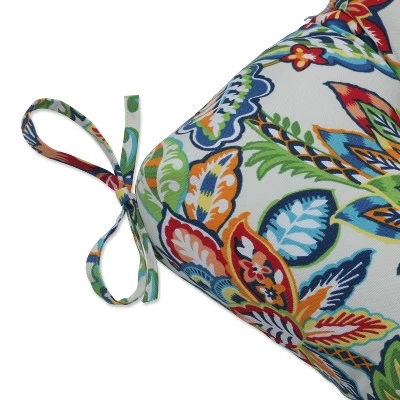 Bringing distinctive color-rich design to patios and porches, this large outdoor bench cushion adds bold style with its vibrant floral print. This impeccable design boasts large blooms in vivid shades of red, blue, green, orange and yellow that pop off the off-white ground. Additional features of this large outdoor bench cushion include tufted detailing, 14″ ties and recycled polyester fiber fill with a sewn seam closure. Also suitable for indoor use.