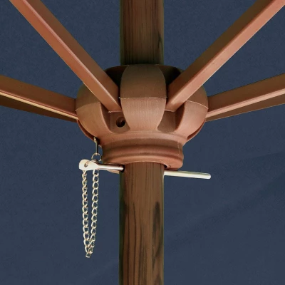 The 9-foot Steel Market Patio Umbrella is the perfect size for large patio tables. It has a hexagonal shape and a unique wood-like finish that adds to its stylish appeal. The manual push-lift opening design is easy to use, and the non-tilting design ensures extended durability. The six ribs provide stability, and the polyester fabric is the perfect shield from harsh UV light and easy to clean. Whether you’re looking for sun protection or simply want to add a touch of elegance to your patio, the 9-foot Steel Market Patio Umbrella is the perfect choice.
