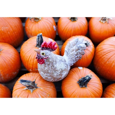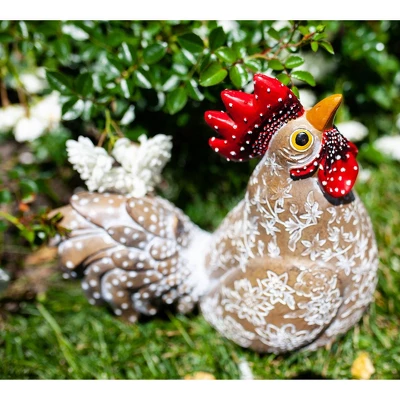 Add some farmhouse charm to your home with this classic rooster statue! Hand painted in natural tones with beautiful details, this adorable rooster is sure to make you smile. A beautiful addition to any home or garden.