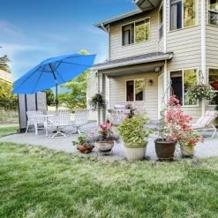 Entertain guests with an attractive piece of outdoor décor that also provides quality sun protection with the Outdoor Umbrella by Nature Spring. The easy-to-use hand-crank opens and closes the patio table umbrella in seconds, so you can relax in the shade during hot summer days. The convenient push button tilt feature allows you to adjust the vertical tilt of the outdoor shade in 5 positions, providing UV protection wherever the sun is shining. In addition, this large outdoor umbrella is made with durable steel ribs and a sturdy aluminum pole that fits in most deck tables or umbrella stands (not included) for superior value while enduring heat, wind, and rain.