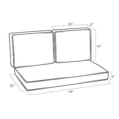 - Cushion Dimensions (2) Pillow Backs: 24″ W x 19″ L x 8″ H