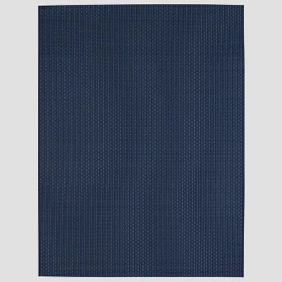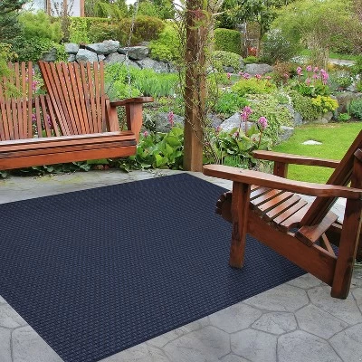 - A blue basket weave outdoor rug