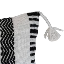 Black Striped Hand Woven 14×22″ Outdoor Decorative Throw Pillow With Hand Tied Tassels – Foreside Home & Garden