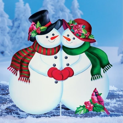This darling snow couple is dressed for the cold in colorful hats, scarves and mittens, and they’re a charming addition to your outdoor holiday décor. This metal stake anchors easily anywhere in your yard, and includes floral and cardinal accents. Easy to assemble. Metal. 17 1/4″L x 23 3/4″H.