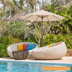 - Vented Canopy- The canopy in beautiful color is designed to facilitate air flow and give you a good protection in windy climates or bright sunlight. You can choose a suitable base to match the umbrella or assemble it into a patio table with central hole.