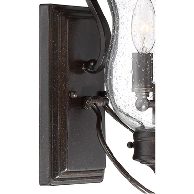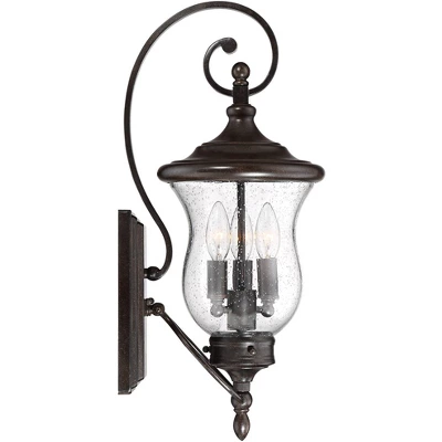 The Carriage outdoor wall light features a handsome bronze finish that accentuate the traditional beauty of the design. The clear seedy glass shade adds a charming and unusual touch to this otherwise conventional look. This light comes with three energy-efficient LED bulbs that ensure a bright and bold presence.