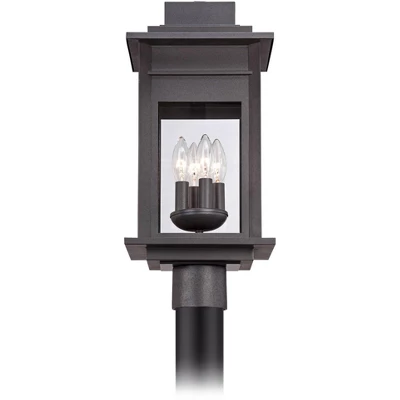 Franklin Iron Works Rustic Outdoor Post Light Fixture LED Black Specked Gray 35 1/2″ Clear Glass For Exterior Garden Yard Driveway