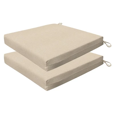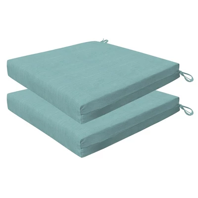 Add a splash of color & comfort to your outdoor living space with our 2-pack premium patio dining seat cushions. Crafted with durable & stylish fabrics, these cushions will resist the elements while remaining bright and beautiful for years to come. Finished & filled in the US with superior polyester fiber for long-lasting comfort and support. Measures 20″W x 20″D x 4″ thick