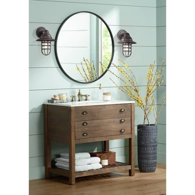 John Timberland Marlowe Industrial Outdoor Wall Light Fixture Galvanized Hooded Cage 13 1/4″ Clear Glass For Post Exterior Barn Deck House Porch Yard