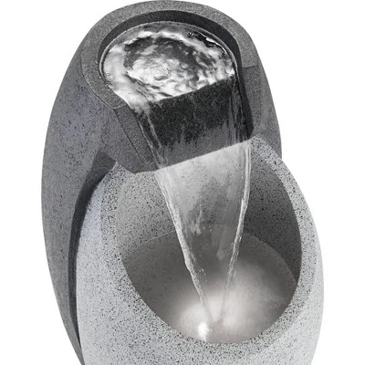 An LED cluster brings energy-efficient illumination to this waterfall fountain. Crafted in lightweight material with a black and gray faux stone finish, the fountain is a lovely choice to complement an outdoor patio or indoor sunroom. This design can be used indoors or outside in a garden, and includes a water pump for fast set up.