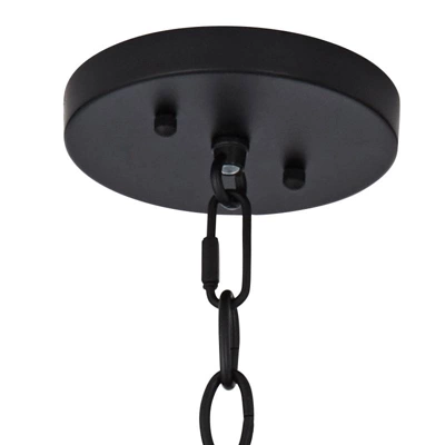 - Comes with 6 1/2-feet of black chain and 12 1/2-feet of black wire. Trim to the desired hang height. Sloped ceiling adaptable.