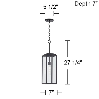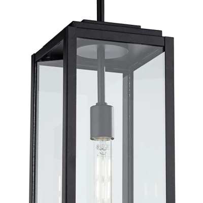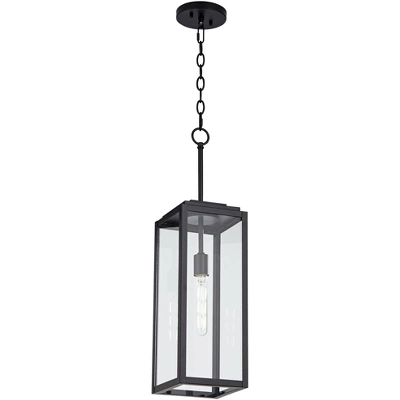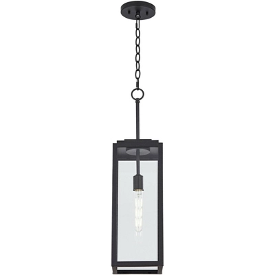 The Titan collection of outdoor lighting fixtures is here to make a statement, with a modern twist. The classic and clean lines of the design feature a rectangular form in a mystic black finish. The outdoor hanging light has clear glass panels that showcase the fixture’s single bulb. Contemporary design aesthetics create a definitive angular profile, creating a brilliant addition to your outdoor areas.