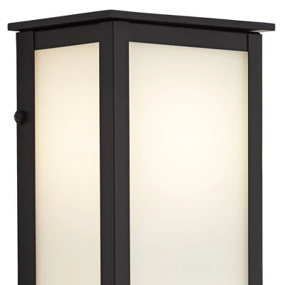 - Black finish exterior. Milky white glass shade.