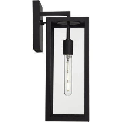 - Mystic black finish. Clear glass panels allow bulb to be seen. Vertical installation with bulb pointing down only.