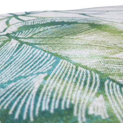 Accent your patio or deck in the gorgeous look of a tropical rainforest with this set of two outdoor tufted wicker chair cushions. Their leafy print pattern, in watercolor shades of green and blue with white outlined leaves, covers the linen textured fabric. Additional features of these outdoor tufted wicker chair cushions include recycled polyester fiber fill and sewn seam closures. Also suitable for indoor use.