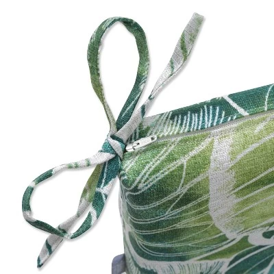 Accent your patio or deck in the gorgeous look of a tropical rainforest with this outdoor bench cushion. Its leafy print pattern, in watercolor shades of green and blue with white outlined leaves, covers the linen textured fabric. Additional features of this outdoor bench cushion include square corners, 14″ ties and recycled polyester fill with a zippered closure for easy removal. Also suitable for indoor use.