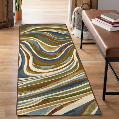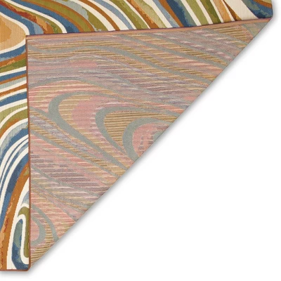 The decorative Tides features an ocean inspired abstract rug with swirls of earth tone colors bringing serenity to any space, indoor or outdoor. Made in Egypt from 75% polypropylene/25% polyester, the Marina Collection is Power Loomed to create intricate designs with a broad color spectrum and a high-quality finish. The material is flatwoven, low profile, weather resistant, UV stabilized for enhanced fade resistance, durable and ideal for those high traffic areas such as your patio, sunroom, kitchen, entryway, hallway, living room and bedroom making this the ideal indoor or outdoor rug. Detailed patterns are offered in an eclectic mix of styles ranging from tropical, coastal, geometric, contemporary and traditional designs; making these perfect accent rugs for your home. Limiting exposure to rain, moisture and direct sun will prolong rug life.