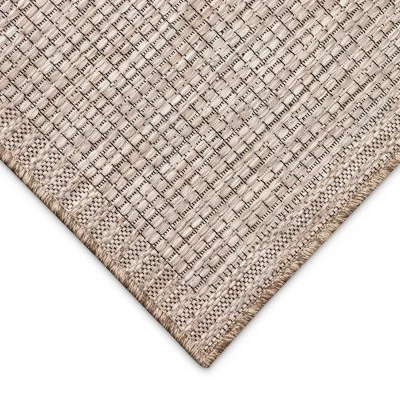 The Texture rug features a basketweave patterned center with a contrasting striped border adding a rustic textural look to any space, indoor or outdoor. Made in Egypt from 100% polypropylene, the multi textural effects of the Orly Collection distinguishes this casual power loomed collection. The contrasting textures with an array of motifs featuring braids, twills, crosshatch and boucle that are rich in dimension creating intricate designs in natural tones with a high-quality finish. The material is flatwoven, low profile, weather resistant, UV stabilized for enhanced fade resistance, durable and ideal for those high traffic areas such as your patio, sunroom, kitchen, entryway, hallway, living room and bedroom making this the ideal indoor or outdoor rug. The artisan crafted patterns are offered in an eclectic mix of textures ranging from contemporary to traditional designs; making these perfect accent rugs for your home. Limiting exposure to rain, moisture and direct sun will prolong rug life.