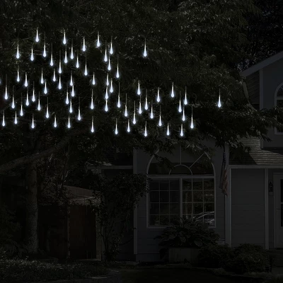 Add soft ambiance to your outdoor spaces with the Set of 2 8 Mode Solar Powered LED String Lights by Nature Spring. This string of outdoor lights is easy to set up; simply hang them from a fence post or stair railing and secure in the ground with the included stake. The 30 LED bulbs are powered by a solar panel and rechargeable 1.2 V 600 mAh Ni-MH AA battery and feature an automatic on function at dusk. Once it’s switched on, the lights provide hours of soft lighting for parties, relaxing on your patio, festivals or gatherings with friends and family. A second switch allows you to choose between eight different lighting modes: Steady On, Combination, Light Waves, Sequential, Slo-glo, Chasing/Flash, Slow and Off. The solar panel opens for access to the on/off switch to save battery life on nights where they’re not needed. The modern teardrop shape of the lights is beautiful both during the day and at night, bringing charm to your backyard, patio or gazebo.
