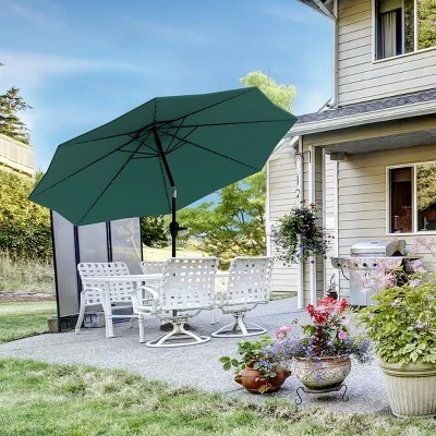 - LONG-LASTING – This outdoor patio umbrella is crafted to maintain its quality and enhance your décor, season after season. The 8 supporting steel ribs and powder-coated steel pole will provide trusted durability while you entertain your guests.