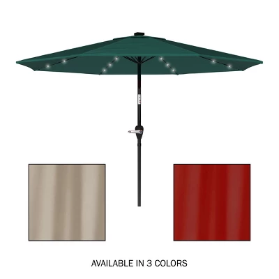 - SOLAR PATIO UMBRELLA – This stylish 10-foot canopy features a push button tilt and easy-to-use crank handle that make UV protection a breeze at any time of day, while the 32 solar powered LED lights on the underside are perfect for evening entertaining.