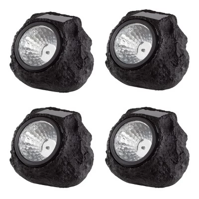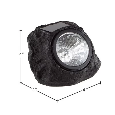 - PRODUCT DETAILS – Materials: Polypropylene. Dimensions: (L) 4″ x (W) 4″ x (H) 4″. Set Includes: 4 Faux Rock Lights With 1 12v600mAH Ni-MH Battery Each. Lights Last 6 Hours After a Full Charge. Color: Black.