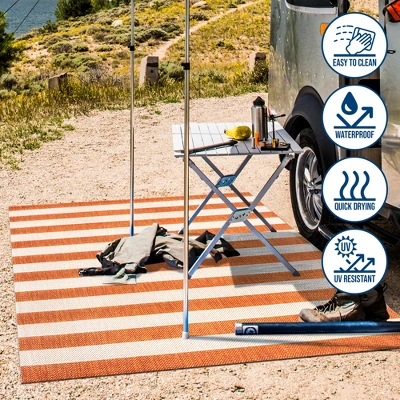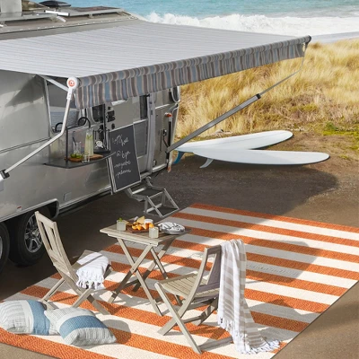 Bring home a timeless stripe rug for your modern cottage, beach bungalow or farmhouse. Our durable low pile rug features wide, woven stripes in two contrasting colors. Add graphic punch to your living room, dining room, bedroom, or porch with this easy-care, family-friendly rug.