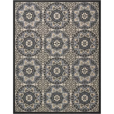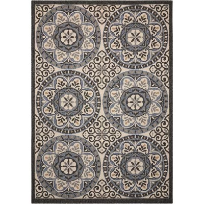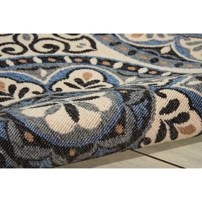 Imagine a beautiful veranda opening on to an ocean scene. That’s the appeal of the patio-tile motif in this Caribbean Collection area rug. Robustly colored in a sun-washed spectrum of blue, tan and charcoal on sand, and enjoyable indoors or out.