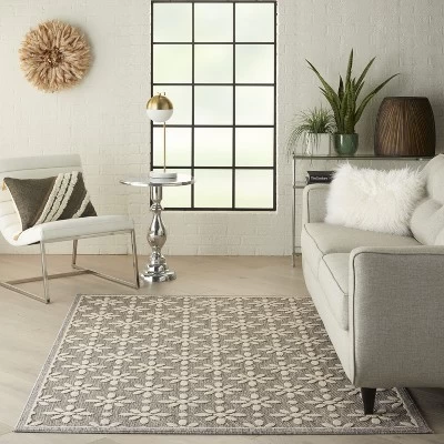 Turn on the charm with a scattering of blossoms to enhance a favorite room or outdoor space! This Palamos area rug features dimensional stylized blooms in a high-low pile that is power-loomed for lasting texture and durability. Beautifully versatile in cream with soft grey floral detail.