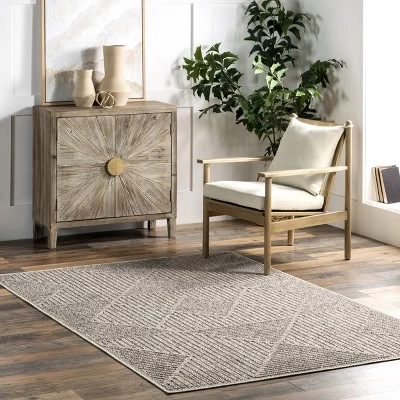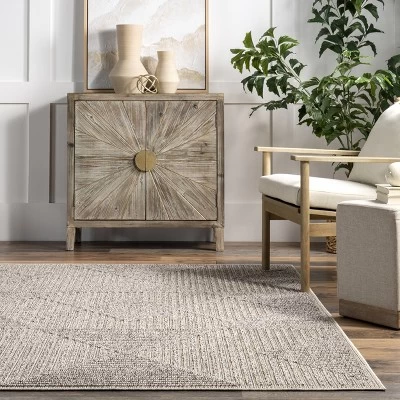 Soft color, modern design and versatility is now yours with this beautiful machine-made indoor/outdoor rug. Crafted using durable synthetic materials, this rug cushions your feet for ultimate comfort, and can create the perfect ambiance whether you decide to use these indoor or outdoor. A neutral color scheme with a high-low design makes this the ideal rug that pairs with any of your existing decor. Enjoy your time at home with our pet-friendly and easy to clean area rugs.
