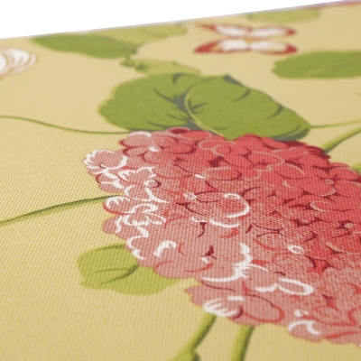 Dotted with butterflies and lovely flowers, this set of two outdoor decorative pillows delivers a look of tranquility. In shades of red, off-white and green, their botanical pattern is set on a background in a soft shade of yellow. Polyester fabric is weather- and fade-resistant. Additional features of these outdoor decorative pillows include self welt cords for a clean finish and recycled polyester fiber fill with sewn seam closures. Also suitable for indoor use.