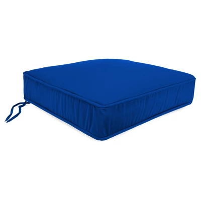 Enhance the look and feel of your patio furniture with this Outdoor Boxed-Edge Seat Cushion from Jordan Manufacturing. This outdoor seat cushion fits most standard outdoor furniture and comes with string ties to keep cushion in place for comfortable sitting. Each cushion has an overstuffed design for extra comfort and has incredibly durable construction — they’re made with polyester blend fill for soft sitting and covered with a weather-resistant acrylic outdoor fabric. Simply add these square outdoor seat cushions to the seats of your patio furniture for an instant style and comfort upgrade. Sunbrella is a 100% acrylic fabric that is water resistant, spill resistant, and fade resistant. Ideal for outdoor use, Sunbrella fabric is UV treated for high-quality fade resistance.