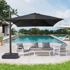 Merrick Lane 9′ Round UV Resistant Outdoor Patio Umbrella With Height Lever And 33° Push Button Tilt