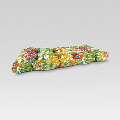 Add comfort to your outdoor seating space with the Outdoor Wicker Loveseat Cushion from Jordan Manufacturing. Crafted from a quick-drying, UV- and water-resistant fabric, this outdoor loveseat cushion withstands sun exposure and the elements to last for the seasons to come. Sporting a solid color, it’s filled full to offer you a cushier feel as you sit down and enjoy the brilliant sunshine on your patio or by the pool, while biscuit tufting adds a touch of dimension to your open-space seating arrangement.