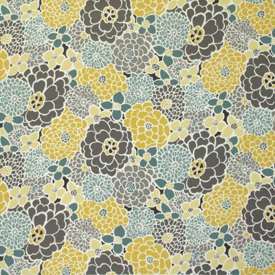 Brighten your porch or deck with the modern floral pattern of this outdoor tufted loveseat cushion. Its flowers are in full bloom in shades of yellow, gray and teal with white outlined petals. Fabric is durable and fade resistant. Additional features of this outdoor tufted loveseat cushion include recycled polyester fiber fill and a sewn seam closure. Also suitable for indoor use.