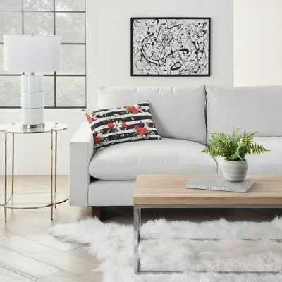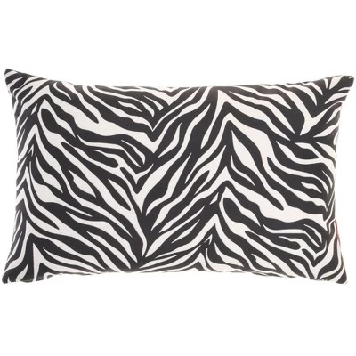Reversible Indoor/Outdoor Rose And Zebra Print Throw Pillow Black/White – Mina Victory