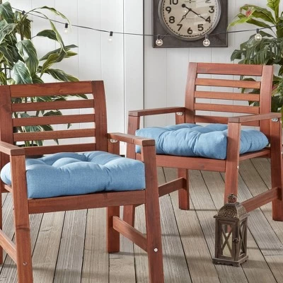 Enhance the comfort and appeal of your patio dining furniture with these Kensington Garden 20-inch square outdoor dining seat cushions. These cushions fit most standard outdoor furniture, and come with string ties to keep cushions firmly attached to furniture. The sewn circle tacks create secure compartments which prevent cushion fill from shifting and bunching. Each cushion is generously filled for lasting comfort and durability with a soft poly-fiber made from 100% recycled, post-consumer plastic bottles, and covered with a UV resistant, 100% polyester outdoor fabric. A variety of colors and prints are available to enhance your outdoor decor.