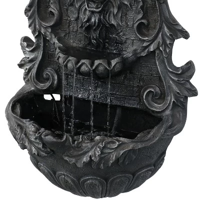 • HIGH-QUALITY AND EASY TO ASSEMBLE: This outdoor wall water fountain is made from lightweight but durable polyresin; Mount this lion head fountain to any surface using a sturdy hook, screw, or nail; Features an LED light with a 194-inch long cord
