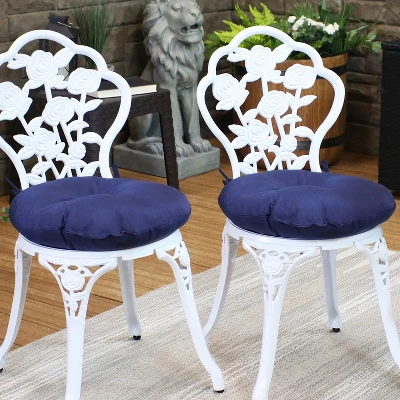 - • PERFECT SIZE: These bistro seat cushions are the perfect size for patio bistro and dining chairs. Measures 15-inch diameter x 4 inches thick; weighs 1.4 pounds per cushion; ties: 9 inches long (2 total).