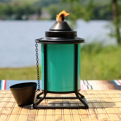 Add decorative yet functional outdoor lighting on any patio table with this set of tabletop metal torches. The metal base adds protective and durable charm against the outdoor elements. Featuring torches in orange, blue, green, and brown, anyone can easily add a pop of color to a backyard oasis. They are a great addition to an outdoor dining space, side tables on the patio, beautifully distributed around the garden, or on the path towards the backyard campfire. Each torch features an attached snuffer, so the flames can be extinguished safely and easily. Since the snuffers are tethered to the torches with a chain, there’s no need to worry about searching for or losing the snuffers. Each torch also includes a long-lasting fiberglass wick to keep the flicker going all night long. Keep the friendly party or family gathering going throughout the evening and light up the night with unique fun.